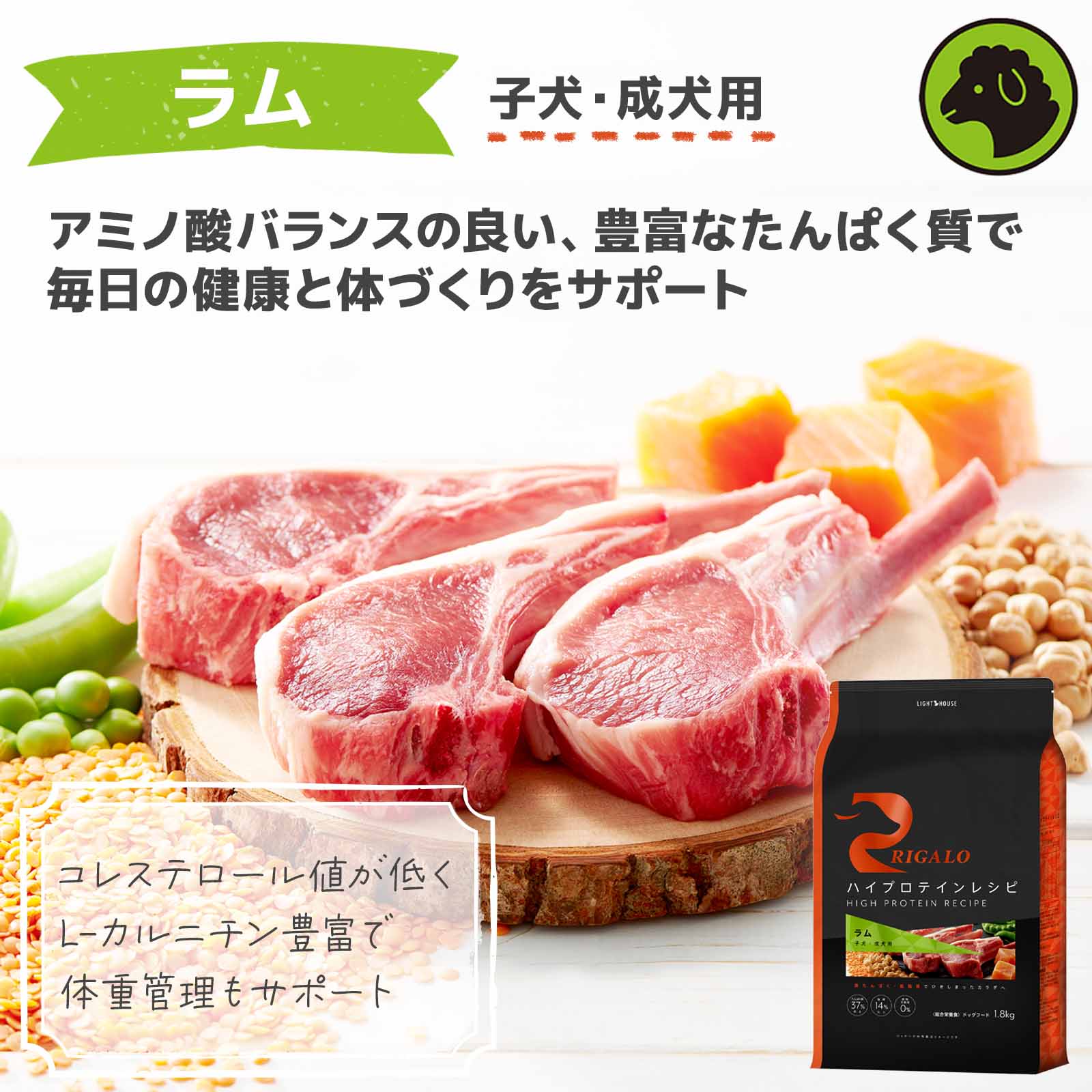 リガロ ハイプロテインレシピ ラム 子犬成犬用 1.8kg