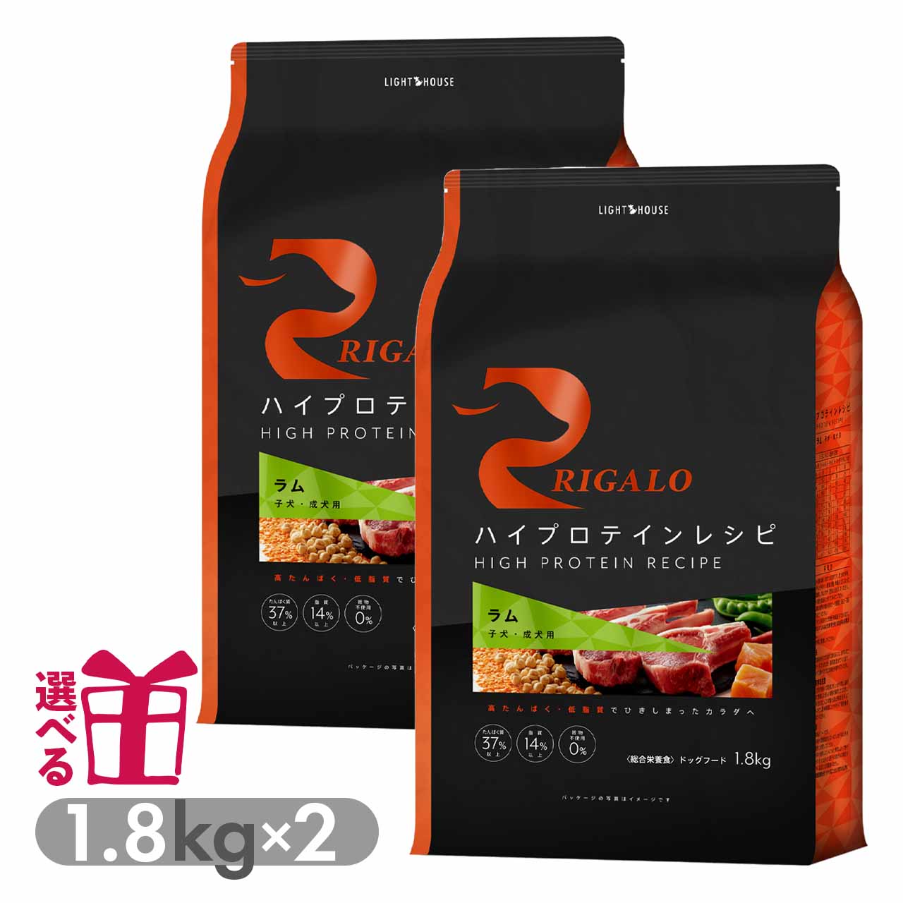 リガロ ハイプロテインレシピ ラム 子犬成犬用 1.8kg×2袋