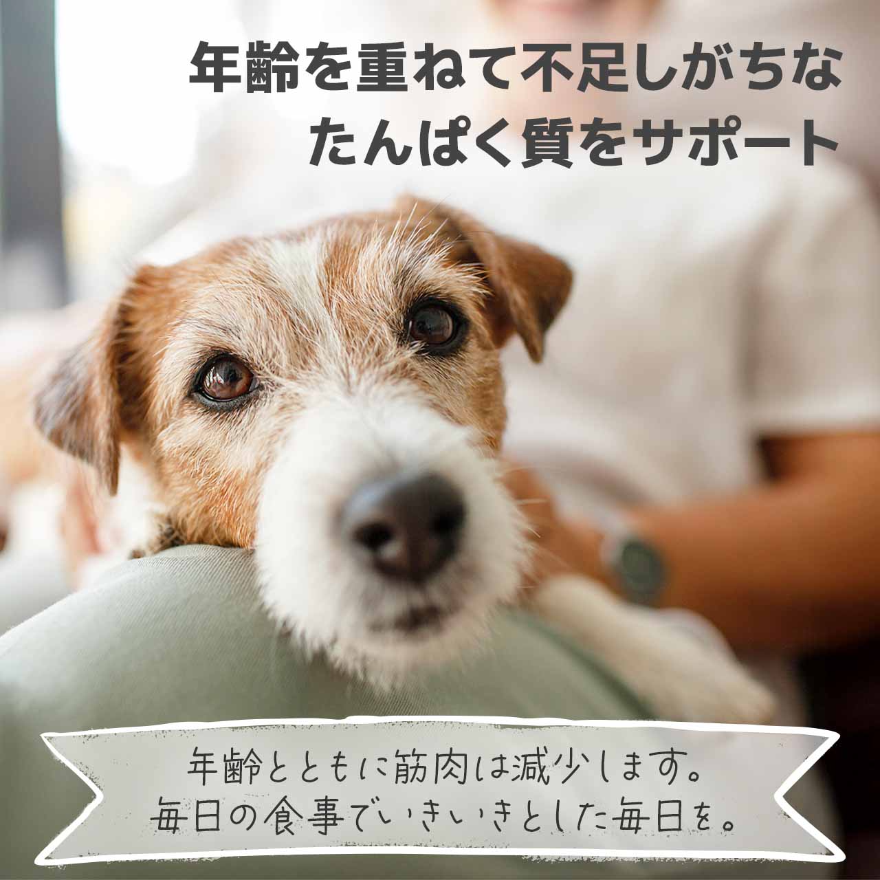 シニア犬にも“たんぱく質をしっかり摂れるごはん”として設計されており、年齢を重ねたときも安心して切り替えていただけます。
